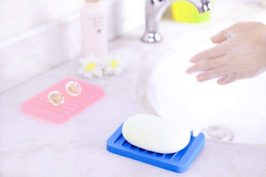 1Pc Bathroom Accessories Silicone Flexible Soap Dish Storage Soap Holder Plate Tray Drain Creative Bath Tools