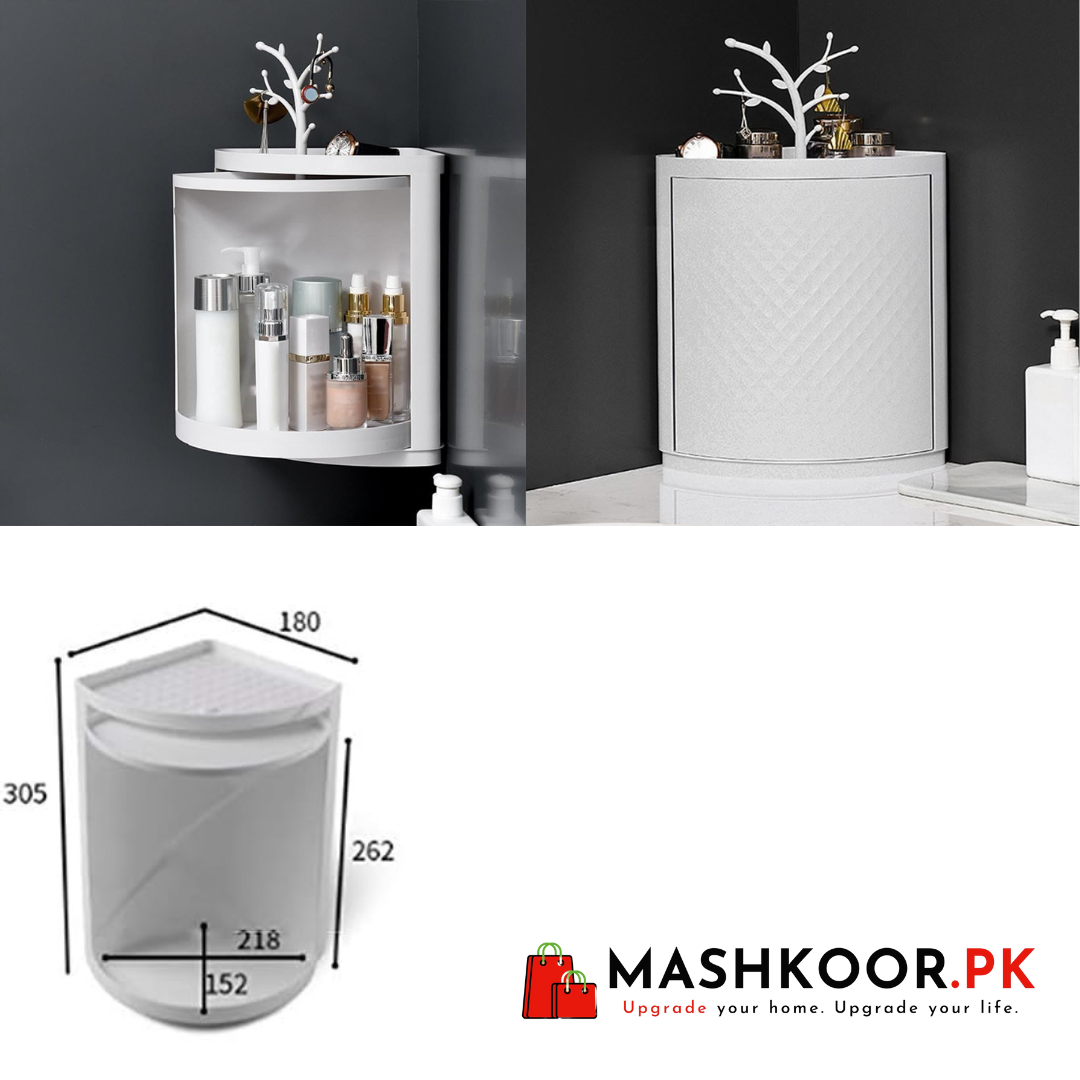 Rotating Triangle Rack Wall Dust Storage Rack Bathroom Corner Makeup Storage - White